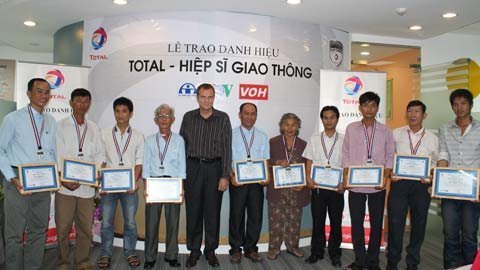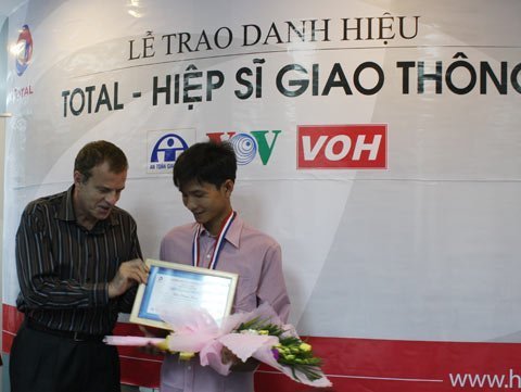 | Ông Jean Nehlil -TGĐ Cty Total Việt Nam trao tặng bằng khen và phần thưởng cho các Total – Hiệp sĩ Giao thông |